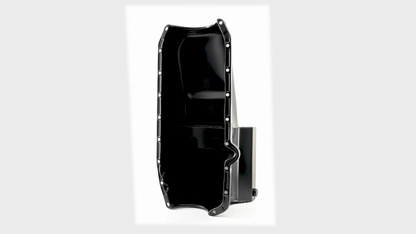 Upgrade your Chevy small block engine with this CFR Performance black steel drag racing oil pan, designed specifically for 1980–1985 Chevy Small Block 267, 283, 305, 327, and 350 V8 engines. Built to handle the demands of high-performance racing, this 7-quart capacity oil pan features an 8 1/4" deep sump and a single internal trap door to ensure reliable oil control under hard acceleration and high RPM conditions. The durable black powder-coated steel construction offers excellent corrosion resistance and a sleek race-ready appearance. The dipstick is located on the passenger side for easy oil level checks.