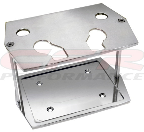 Complete your engine bay with this CFR Performance smooth billet aluminum battery tray — the perfect fusion of form and function for custom and performance applications.
