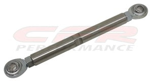Universal 5 1/2" Stainless Steel Adjusting Rod. Adjusting rod features heim 3/8" (0.375) eyelet rod ends for use with 3/8" diameter bolts or smaller when used with a shoulder bolt. It offers 3/4" of adjustment on each end and has left and right hand threads for easy adjustment without needing to remove. Dimensions: