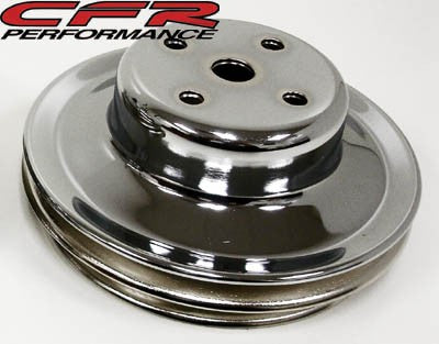 Dress up your engine bay and improve accessory drive performance with this Chrome-Plated 2-Groove Water Pump Pulley, designed for 1969–1985 Chevy Big Block engines with a long water pump.