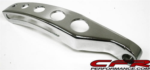 Chevy small block chrome upper alternator bracket fits 1979-1986 Chevy small block 305-350 engines with a long water pump. Bracket mounts to the water pump.