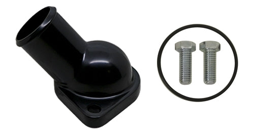 Zinc Alloy Chevy small block 283-305-327-350 & big block 396-402-427-454 V8 Black thermostat housing water neck. Two stainless steel bolts and O-ring gasket included.