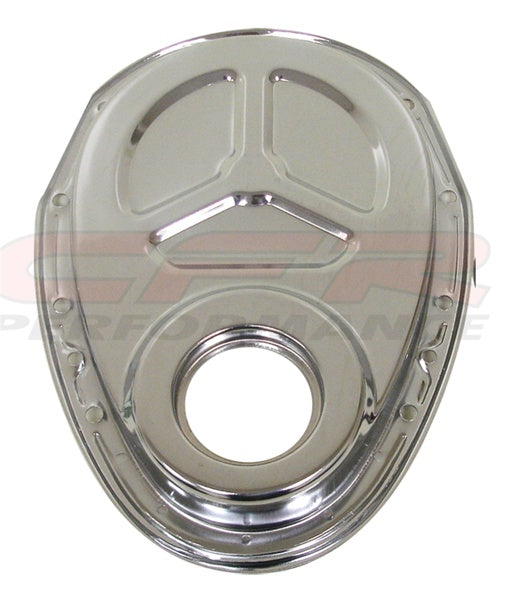 CFR PERFORMANCE STEEL 1955–95 CHEVY SB 283–305–327–350–400 TIMING CHAIN COVER (ROLLER CAM) – CHROME