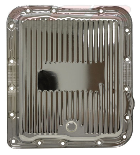CFR PERFORMANCE STEEL TRANSMISSION PAN – COMPATIBLE WITH CHEVY/GM 700R4, 4L60E, 4L65E – CHROME – STOCK CAPACITY – FINNED