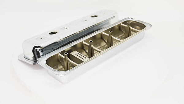 CFR PERFORMANCE STEEL VALVE COVERS – 1987–00 CHEVY/GMC 5.0L & 5.7L CENTER BOLT – CHROME – BALL MILLED – WITH BOLTS (9812-C)