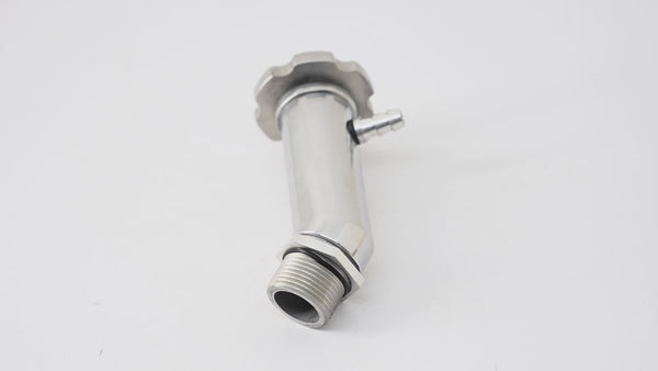 Introducing our OIL FILLER TUBE W/ OIL BAFFLE - POLISHED. This product is perfect for preventing oil spillage and protecting your engine. Its polished finish adds a sleek look to your car. Constructed with high-quality materials for durability.