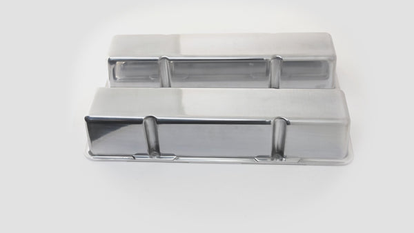 Enhance the look and performance of your classic Chevy small block with these polished aluminum tall valve covers. Designed to fit 1958–1986 Chevy SB 283–400 engines, these covers feature a smooth, no-hole design for a clean, custom appearance—perfect for show cars and performance builds. The tall profile provides extra clearance for high-lift cams and aftermarket roller rockers.